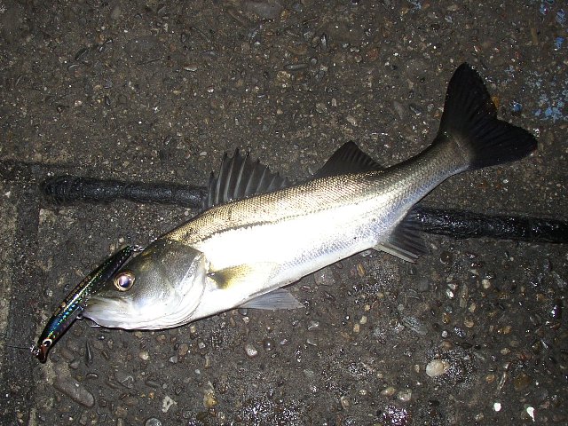 ホロ系のミノーをスローに巻いて、アタっても強引にアワせず引いてきて、プルルと来たのはセイゴちゃん(^。^;)