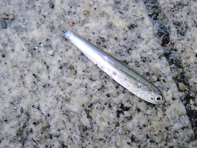 唯一の釣果は、名人がゲットした群れからはぐれたカタクチ(^-^;
