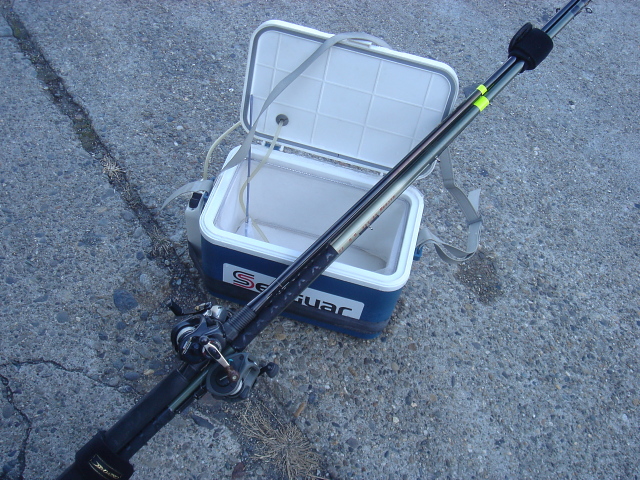 エビを撒きます!エビクーラーが凍って蓋が閉まりません!