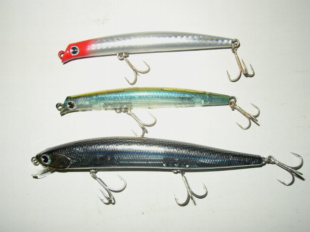 てな訳で、強風吹き荒れる土曜に、釣具屋巡りで買った限定カラー・吾郎さんのナバロン(一番下)と、ちょっと前に買ったkomomo SF-95 Slim(レッドヘッドと湾奥プロブルー...バチ抜け活躍予定でしたが...( ̄∇ ̄;)ハッハッハ)です。